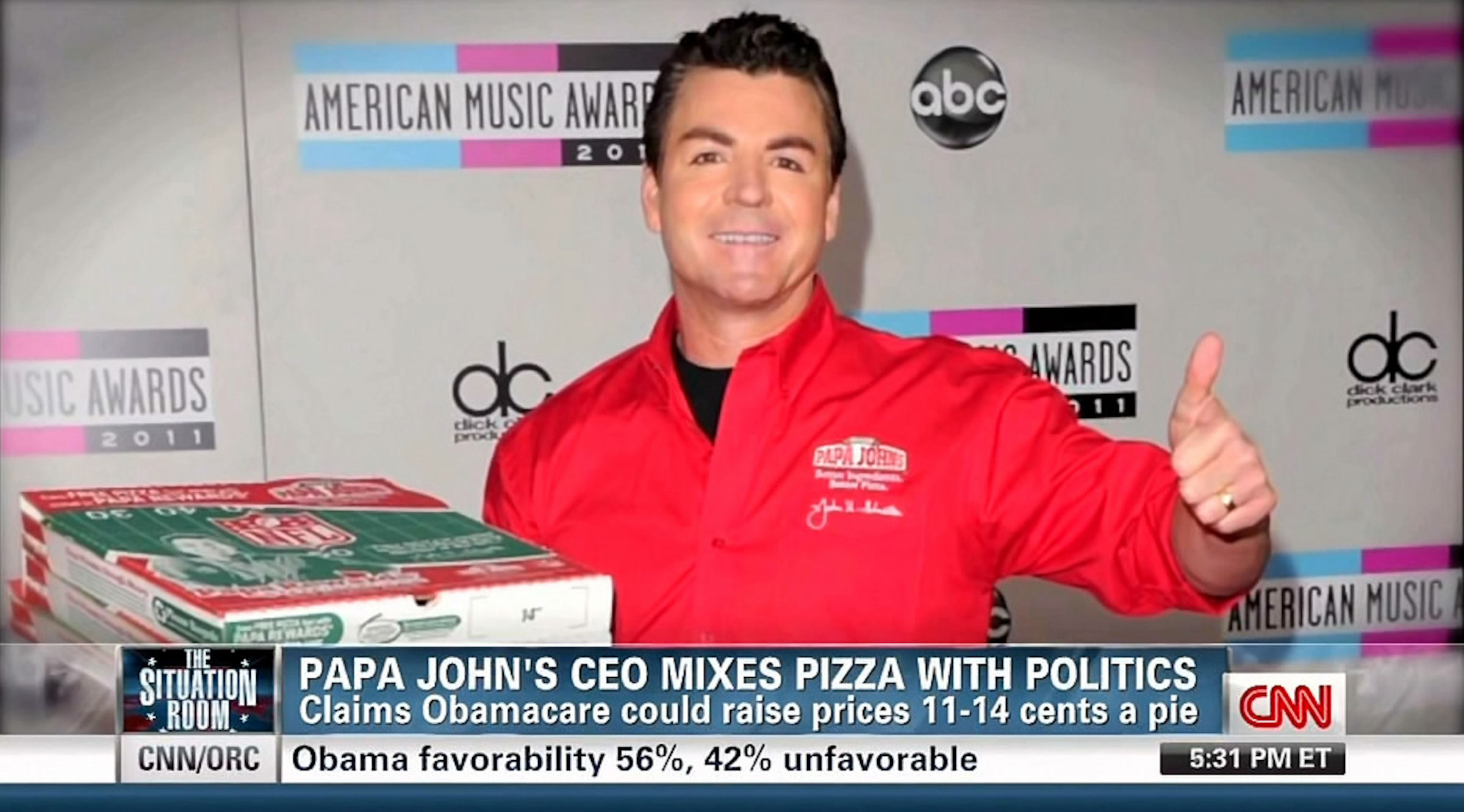 There’s a movement to boycott Jim Beam, and a counter movement to support the brand, because spokesperson Mila Kunis announced donations to Planned Parenthood in Mike Pence’s name. And then there’s Papa John Schnatter, who had to renounce support of white supremacists and apologize for appearing divisive after publically stating that the NFL’s handling of the national anthem controversy had hurt its pizza sales.Well, we all know about Papa John, who famously said that, "We're not supportive of Obamacare, like most businesses in our industry…If Obamacare is in fact not repealed, we will find tactics to shallow out any Obamacare costs and core strategies to pass that cost onto consumers in order to protect our shareholders' best interests."All that because he’d have to pass on a 14-cent price increase on a large pizza onto the consumer.
