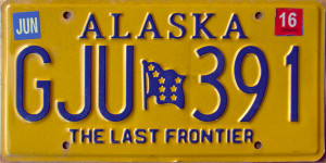It doesn’t get better than Alaska. These aren’t seen often in the Lower 48, but are recognized instantly when they are. Two simple colors, the state name in large type, the state flag and motto. Clean, timeless and memorable.